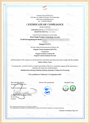 3. 销售证书为每一批次产品的有机棉证书