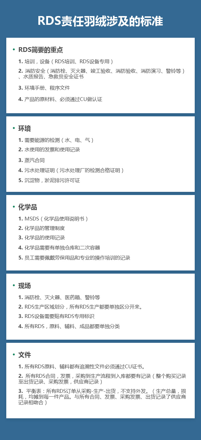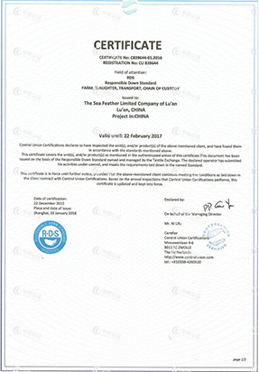 RDS证书符合世界人道主义要求, 符合世界潮流,是羽绒企业走出国门的通行证,让您的企业有更强的市场竞争力,强化企业的品牌意识。极大地提升了该企业的国际竞争力,有力促进了企业和地方经济的发展。