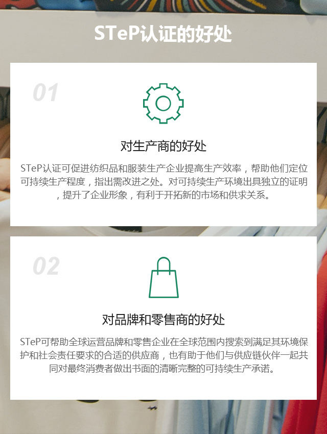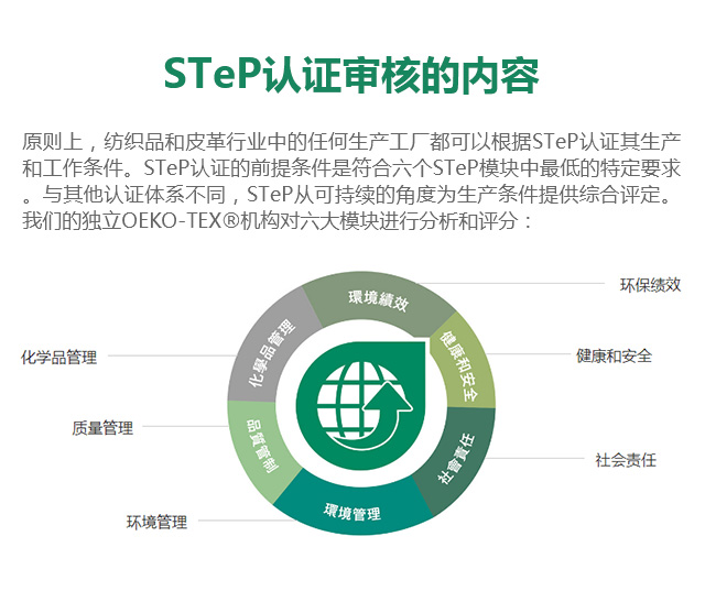 STeP认证全称为“可持续纺织生产认证”,是国际环保纺织协会Oeko-Tex提供的一项独立认证体系。